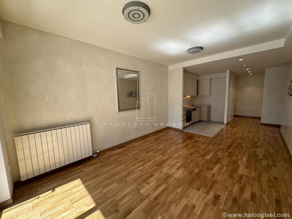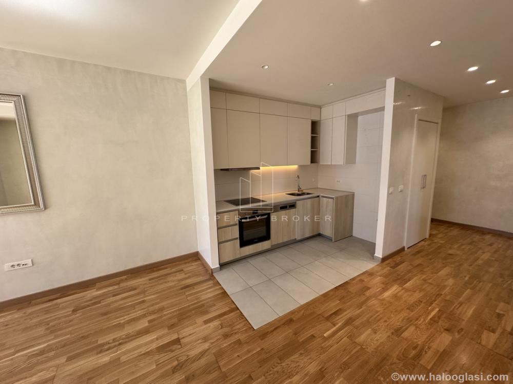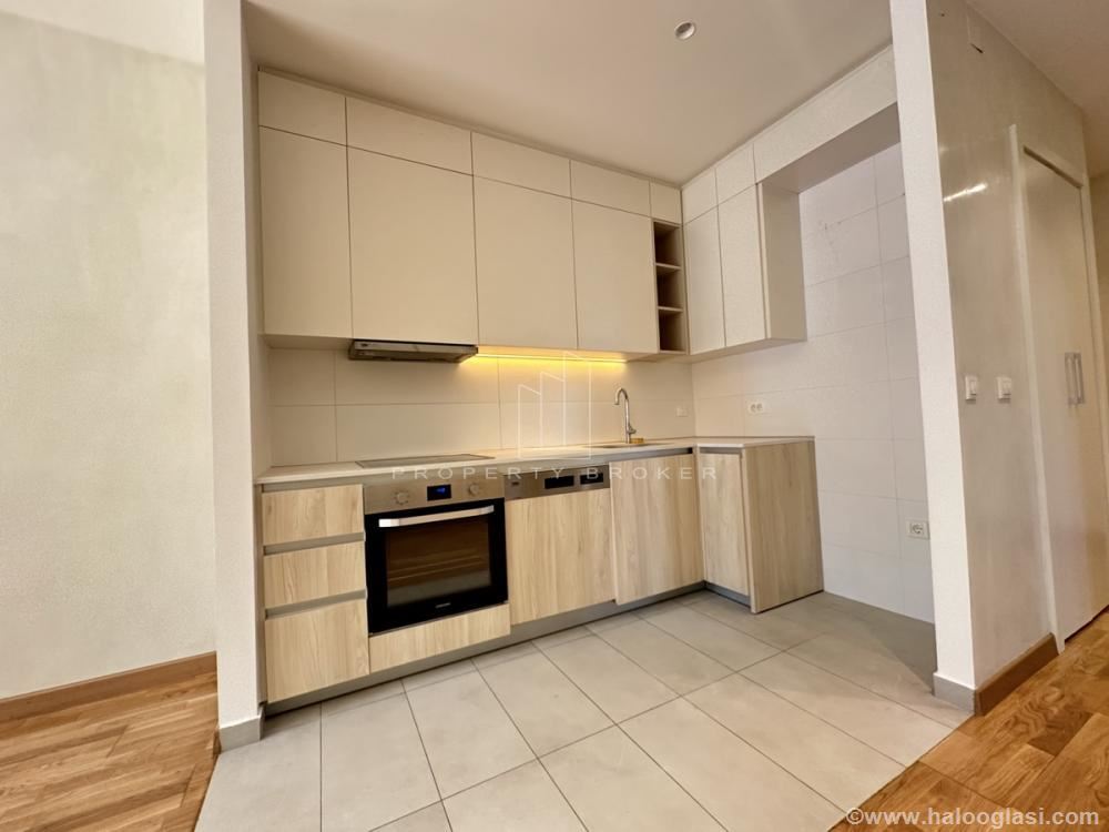 Prodaje se polunamešten, opremljen kuhinjskim elementima sa belom tehnikom i plakarima.