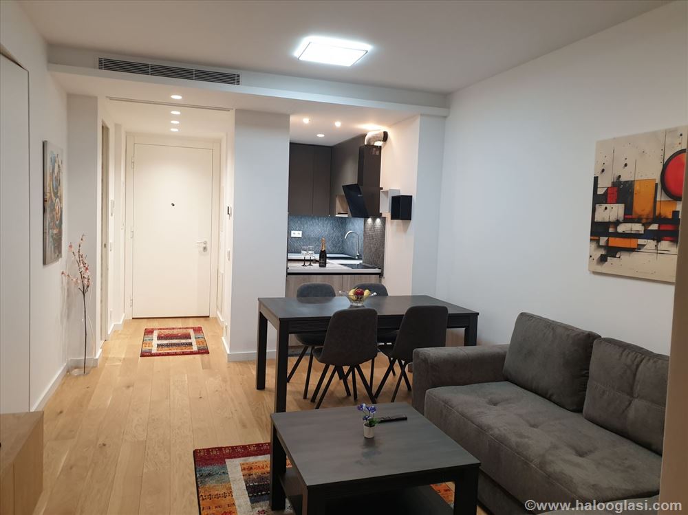 Stan je opremljen najsavremenijom Smart tehnologijom, koja omogućava potpunu kontrolu nad domom, pružajući maksimalnu bezbednost i optimizaciju troškova. Enterijer odlikuju materijali vodećih evropskih brendova: