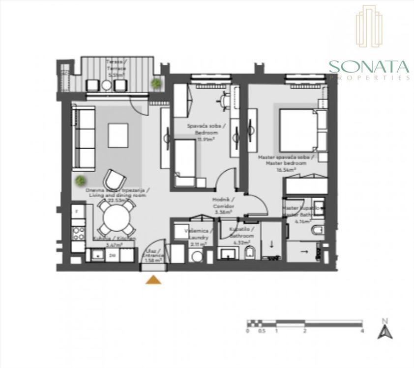 Stanovi su projektovani sa prostranim terasama i velikim prozorima koji pružaju obilje dnevnog svetla i povezanost sa okruženjem.
